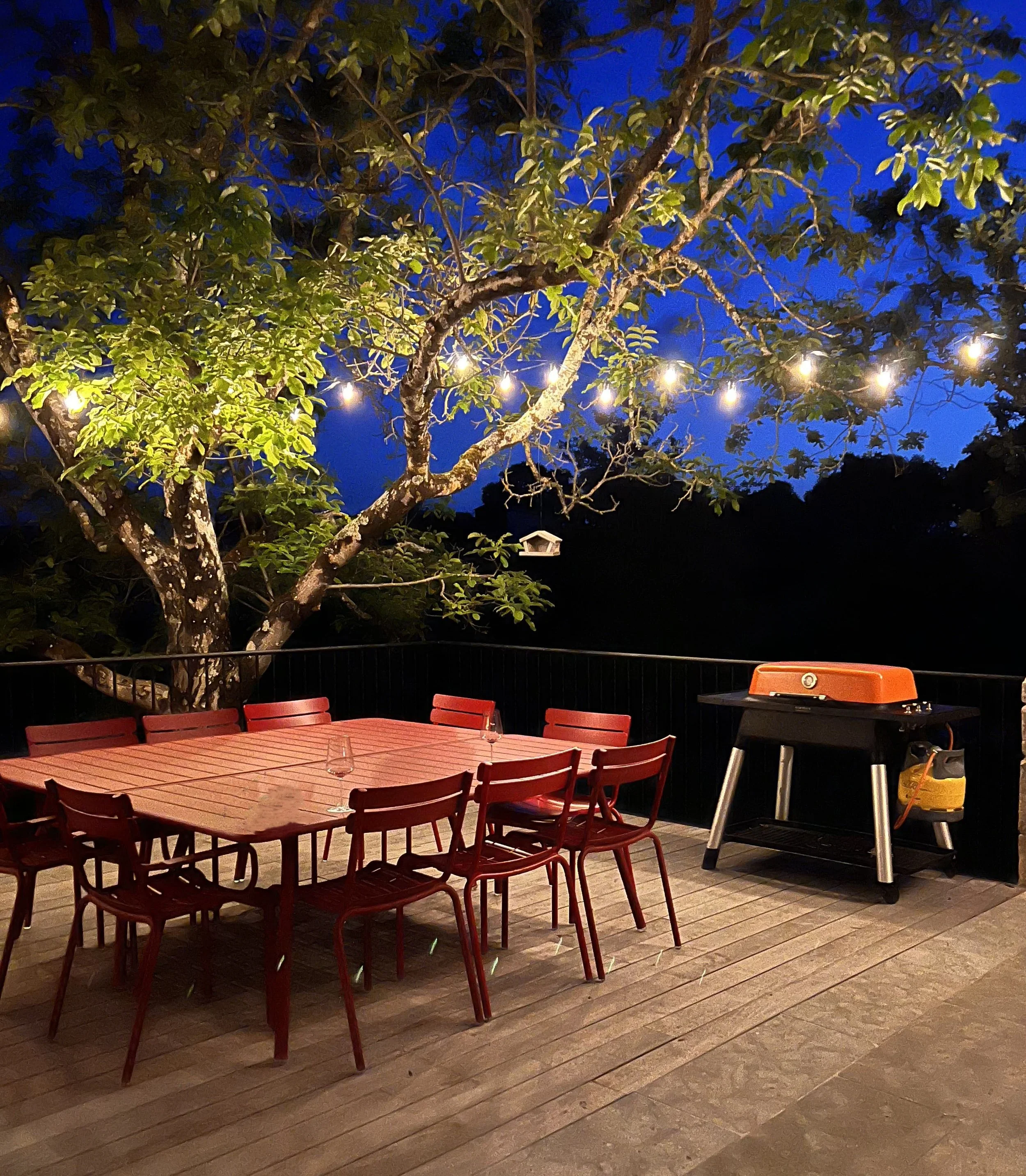 Vitarel has many large open outdoor spaces for gatherings such as weddings, reunions, and corporate retreats. The lower garden has a large flat area that can accommodate up to 120 guests, and landscape lighting ensures that events can extend into the evening. The terrace in front of the main house is connected to the Cottage and the L'Atelier, each with its kitchen. Four kitchens on the property make cooking for large groups easy and convenient.